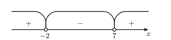 \[ x \in (-\infty, -2) \cup (7, +\infty). \]Ответ: \(x \in (-\infty, -2) \cup (7, +\infty)\)